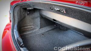 Viajando dos personas compruebas cómo la anchura es más que suficiente para abordar un viaje holgadamente. También la altura libre al techo, un aspecto crítico en este tipo de coches. Cuando lo descapotas hay más sensación de amplitud, obviamente y, como el marco del parabrisas no se inclina demasiado hacia el interior del habitáculo, no queda exageradamente cerca de la cabeza, algo que resulta intrusivo en otros modelos.