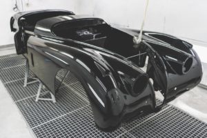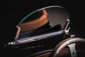 En cuanto a su estética, este Jaguar XK 120 ha sido teñido en un elegante negro sólido. Se han necesitado 13 litros de pintura y cuatro capas para lograr un acabado tan fascinante. La tapa de del depósito de combustible abatible también se inspira en el mundo de las carreras y el parabrisas ha sido sustituido por una pareja de pantallas.